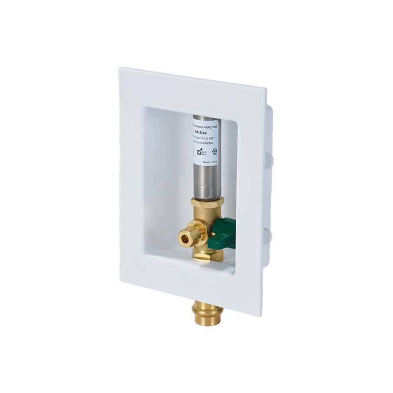 Caja de salida para máquina de hielo con conexión a presión de 1/2" con protector de martillo de agua de acero inoxidable