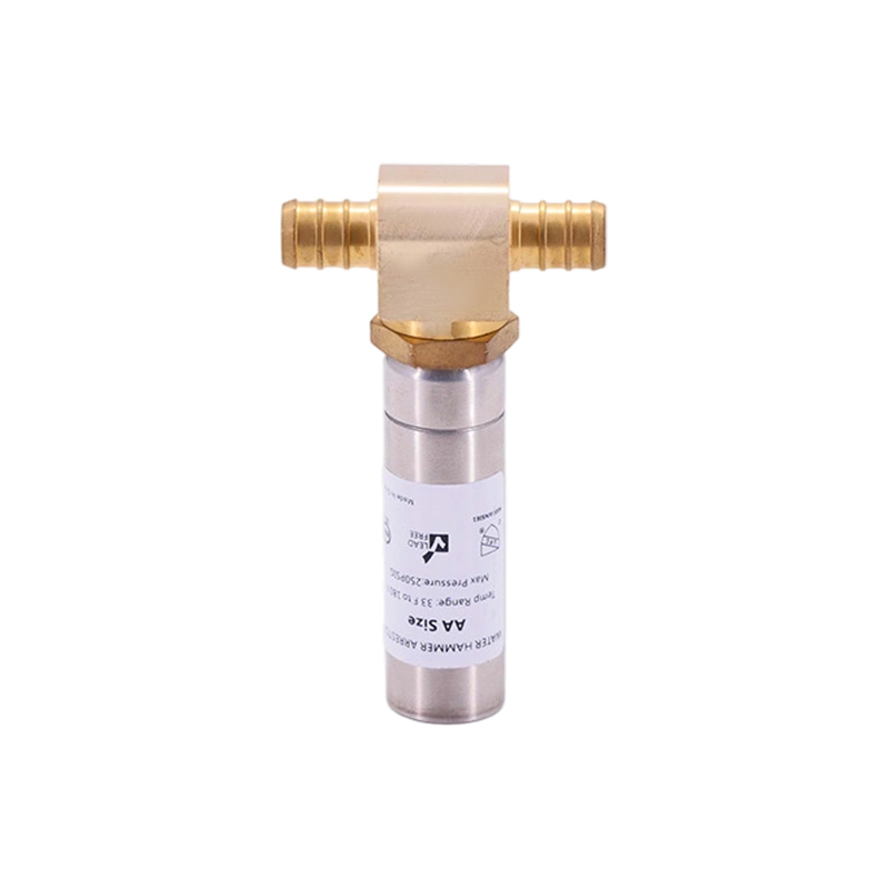 Se trata de un absorbedor de golpe de ariete de acero inoxidable con una interfaz PEX de 1/2 pulgada fabricado según ASTM F1807. Se instala permanentemente mediante una herramienta de engarce y es una solución profesional para suprimir el golpe de ariete en sistemas de tuberías PEX.
