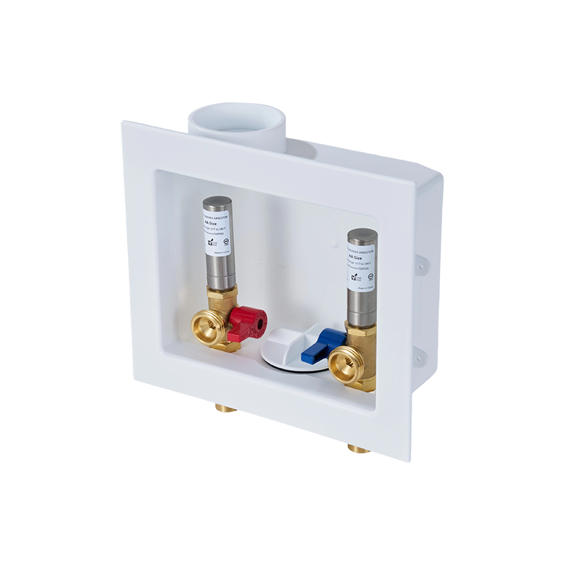 Caja de drenaje para lavadora con conexión a presión de 1/2" con protector de martillo de agua de acero inoxidable